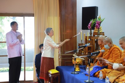 วันอังคารที่ ๓ มิถุนายน ๒๕๖๘ นายคมศิษฐ์ มีสัจจานนธนกุล ผู้อำนวยการกาญจนาภิเษกวิทยาลัย ช่างทองหลวง มอบหมาย ดร.ฉัตรชัย พันธ์นุรัตน์ รองผู้อำนวยการฯ พร้อมด้วยคณะครู บุคลากรทางการศึกษา เข้าร่วมกิจกรรมเฉลิมพระเกียรติสมเด็จพระนางเจ้าสุทิดาฯ พระบรมราชินี พิธีเจริญพระพุทธมนต์ และพิธีทำบุญตักบาตรถวายพระราชกุศล แด่พระสงฆ์และสามเณร เนื่องในโอกาสวันเฉลิมพระชนมพรรษา สมเด็จพระนางเจ้าสุทิดา พัชรสุธาพิมลลักษณ พระบรมราชินี ซึ่งจัดขึ้นเพื่อแสดงความจงรักภักดี และสำนึกในพระมหากรุณาธิคุณอย่างหาที่สุดมิได้ ณ โรงเรียนกาญจนาภิเษกวิทยาลัยนครปฐม (พระตำหนักสวนกุหลาบมัธยม) อำเภอพุทธมณฑล จังหวัดนครปฐม