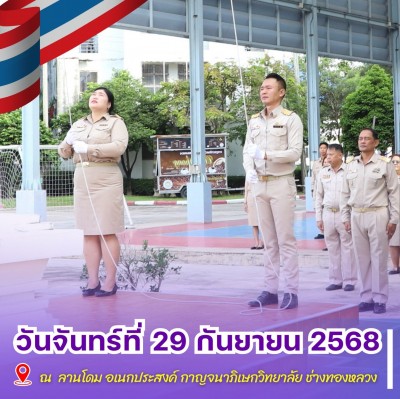 พิธีเชิญธงชาติไทยและร้องเพลงชาติ เนื่องในวันพระราชทานธงชาติไทย (Thai National Flag Day) 📅 วันจันทร์ที่ 29 กันยายน 2568