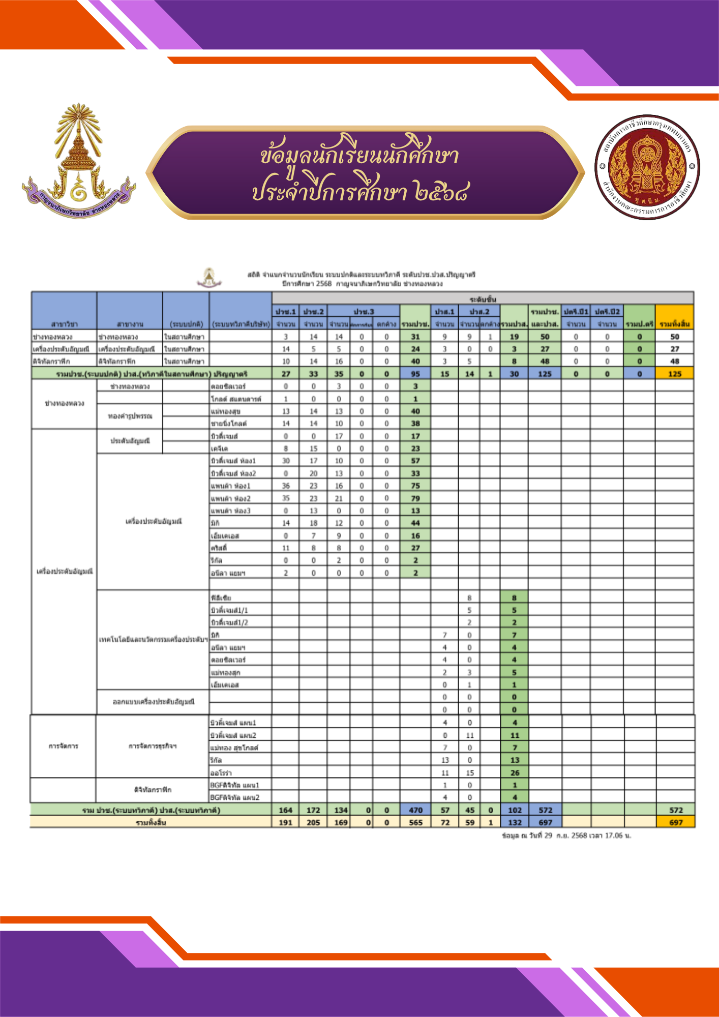 - ข้อมูลนักเรียน นักศึกษา ปีการศึกษา 2568
