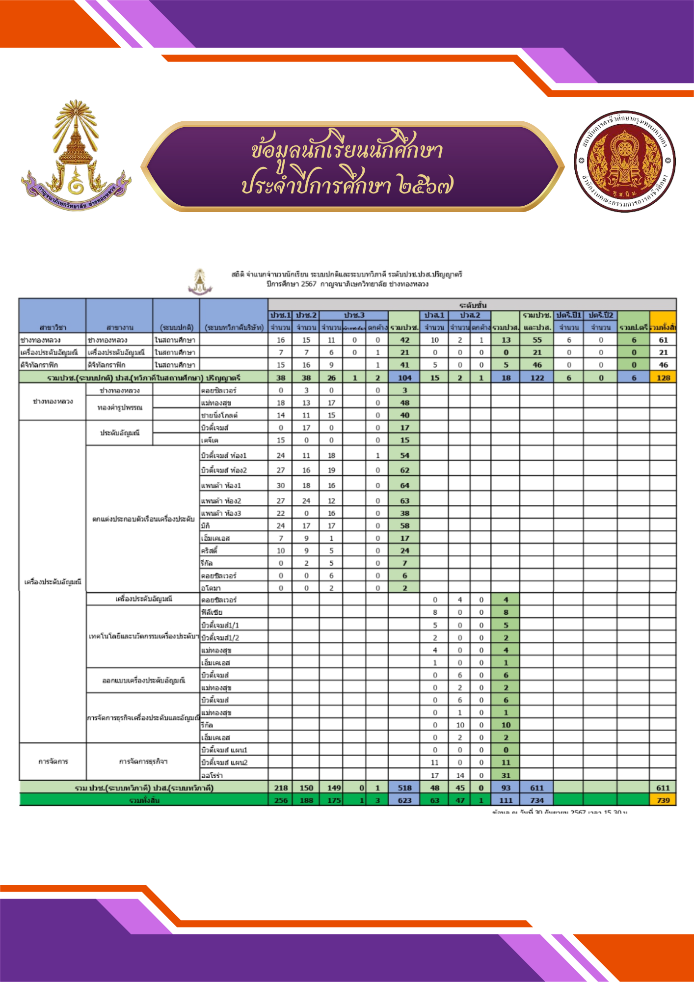 - ข้อมูลนักเรียน นักศึกษา ปีการศึกษา 2567