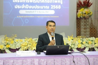 วันพฤหัสบดีที่ 12 ธันวาคม 2567 กาญจนาภิเษกวิทยาลัย ช่างทองหลวง ดำเนินการจัดโครงการพัฒนาศักยภาพครู ประจำปีงบประมาณ 2568 เพื่อส่งเสริมความรู้เกี่ยวกับการทำวิทยฐานะของครูผู้สอนและบุคลากรทางการศึกษา ให้สอดรับกับแผนการพัฒนาบุคลากรภาครัฐ พ.ศ. 2566 2570 ของสถานศึกษาให้มีทิศทางในการพัฒนาตนเอง พัฒนาผลงานทางด้านวิชาการ โดยได้รับเกียรติจาก จ่าสิบเอก ดร.สมพร ชูทอง ผู้อำนวยการสถาบันการอาชีวศึกษากรุงเทพมหานคร เป็นวิทยากรผู้บรรยายให้ความรู้ ในหัวข้อการเขียนประเด็นท้าทายการทำวิทยฐานะของครู ว.9 (PA) และรูปแบบการสอนสำหรับผู้สอนมืออาชีพ ให้แก่ข้าราชการครู และบุคลากรทางการศึกษา กาญจนาภิเษกวิทยาลัย ช่างทองหลวง ในครั้งนี้ ณ ห้องประชุมช่างทองหลวง 2 กาญจนาภิเษกวิทยาลัย ช่างทองหลวง
